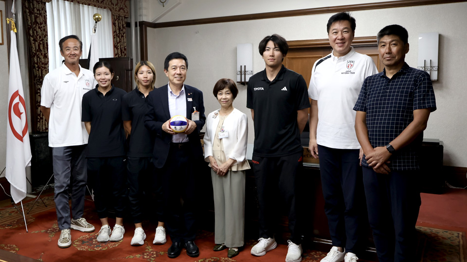 コミッションからのお知らせ「ジャパンビーチバレーボールツアー2025名古屋大会」の開催に伴い、選手及び大会関係者らが表敬訪問されました!