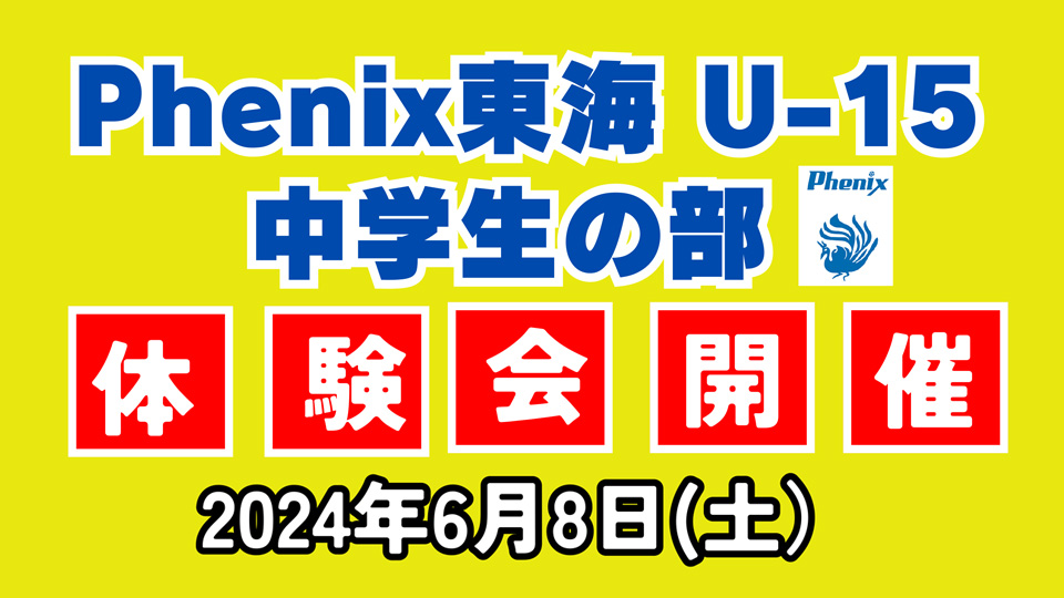地域活動の活性化Phenix東海 U-15 中学生の部 体験会開催のお知らせ