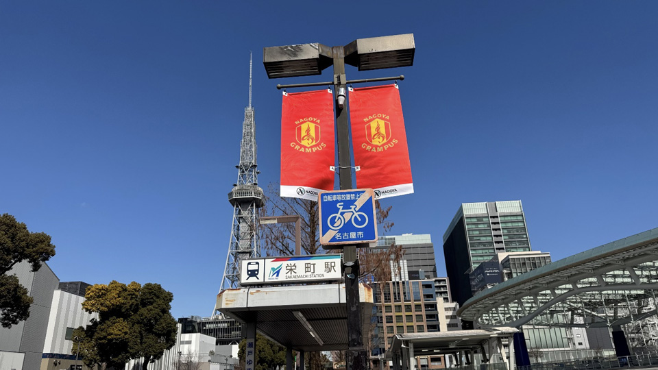 地域活動の活性化久屋大通に名古屋グランパスのバナーを掲出しました。